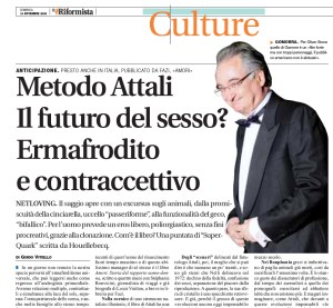 Ma ovviamente, come prevede il fumettone, «alla fine la libertà individuale prevarrà ancora una volta». E magari tra cinquecento anni scopriremo – guarda un po’ – che si può accoppiarsi senza procreare. In quel gran giorno futuro torneremo a parlare di “metodo Attali”, in onore del profeta dei tempi nuovi. Ma sarà un metodo anticoncezionale.