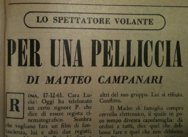 (Matteo Campanari, Per una pelliccia, Il Mondo, 9 gennaio 1962)