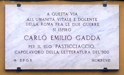 Comunque, il dilagare senza freni d’inventarii viscerali, e l’incessante, ingegnoso quanto puerile sgambetto alla parola consueta (così Cases), rendono la scrittura di Gadda non una scrittura d’invenzione ma piuttosto una scrittura «caricata», una «retoricizzazione del reale» (Baldacci). Perciò si esprime in un’espressività parodica che «si rivolge sempre all’intelligente lettore con una strizzatina d’occhio». Questa espressività, prosegue il critico, è ottenuta attraverso una lingua ridotta a catalogo sincronico, congelato, di tutte le opzioni possibili: siamo cioè di nuovo a D’Annunzio, ma a un D’Annunzio post 1914 – cioè post-catastrofe. E potremmo aggiungere, con una battuta, che Gadda non è né Joyce né Céline appunto per ragioni molto simili a quelle per cui D’Annunzio non è né Mallarmé né Wilde.